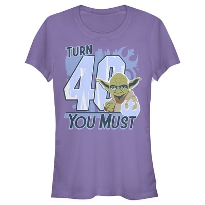 Juniors Womens Star Wars The Mandalorian The Child Retro Logo Stance T-Shirt - Purple - 2X Large