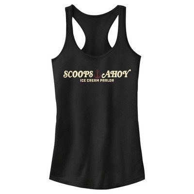 Juniors Womens Stranger Things Scoops Ahoy Nautical Logo Racerback Tank Top