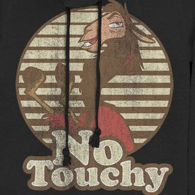 Kuzco HATES being touched but he sure loves the Disney The Emperor's New Groove Kuzco No Touchy Juniors' Cowl Neck! Llama Kuzco is portrayed in distressed text alongside "No Touchy" on this funny fitted Kuzco cowl neck!