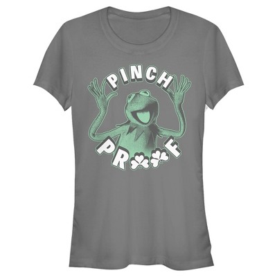 It is not easy being green on St. Patrick's Day, but Kermit is prepared this year with an officially licensed The Muppets St. Patrick's Day Juniors' Graphic Racerback Tank Top! Your favorite green Muppet, Kermit, is encircled by clovers and white text that reads "Pinch Proof" on this festive St. Patrick's Day tee!