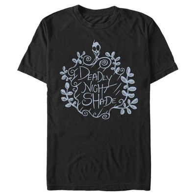 Make your way to Halloweentown and join the scary fun in this officially licensed Disney The Nightmare Before Christmas Halloween Deadly Night Shade Juniors' Graphic T-Shirt! This ghostly juniors' design features features "Deadly Night Shade" in a font surrounded by the toxic herb itself, that Sally used to poison Dr. Finklestein. You will not want to miss out on this tee that is perfect for the Halloween season!