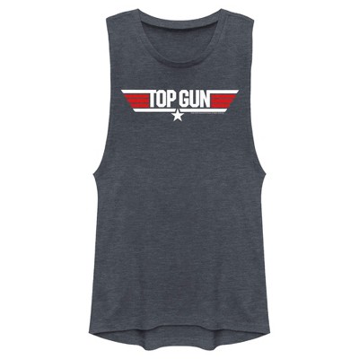 Juniors Womens Top Gun Logo Distressed Festival Muscle Tee