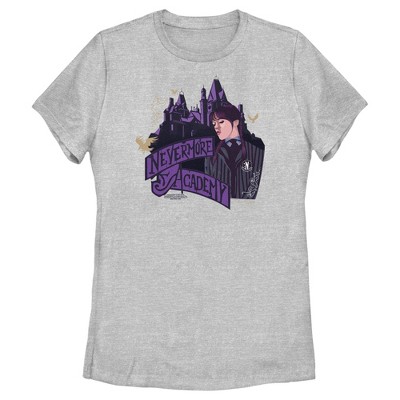Juniors Womens Wednesday Nevermore Academy Nightshade Society T-Shirt - Athletic Heather - X Large