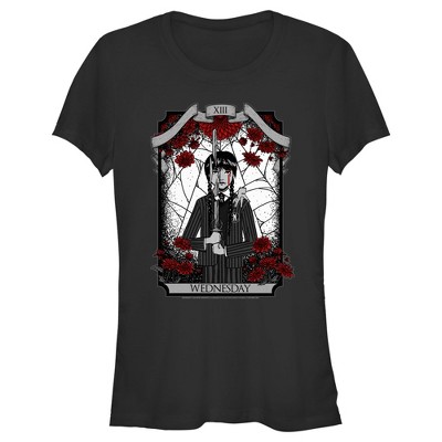 - Strut your stuff with this stylish new juniors' festival muscle tank top that is perfect for every occasion! Featuring animated versions of Wednesday and Thing portrayed in a tarot card-style print that reads "XIII Wednesday" across the front.