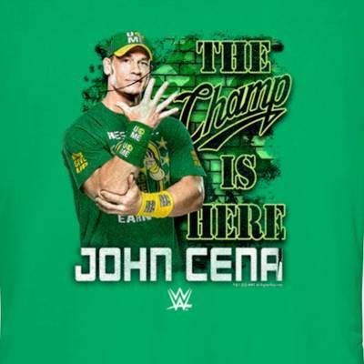 Strut your stuff with this stylish new juniors' t-shirt that is perfect for every occasion! Featuring John Cena in his famous pose and the phrase: "The Champ is Here," in a cool font across the front.