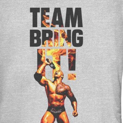 • Strut your stuff with this stylish new juniors' t-shirt that is perfect for every occasion! Featuring a graphic of The Rock screaming into the microphone with the phrase: "Team Bring It!" across the tee.