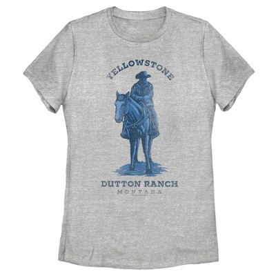 Juniors Womens Yellowstone Blue Realistic John Dutton Riding Horse T-Shirt