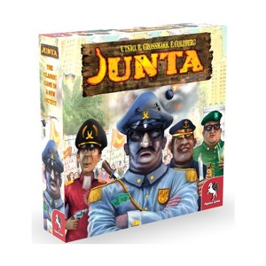 Welcome to the beautiful island of the República de las Bananas, where the air is thick with humidity, mosquitoes, and an unhappy local population. Welcome to JUNTA! First published in 1979, JUNTA pits 4-7 players against each other as members of wealthy ruling families siphoning foreign aid money into secret Swiss bank accounts. You are an unsavory lot.This classic satirical title is everything but politically correct and is rife with opportunities to lie, cheat, steal, and deceive your fellow players. Combining a political card game of manipulation with a strategic board game of combat across the island during a coup, JUNTA is something to experience with friends and enemies, alike.Get ready for a game of POWER, INTRIGUE, MONEY, and REVOLUTION—PREPARE FOR JUNTA!