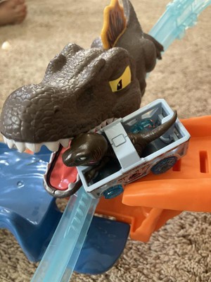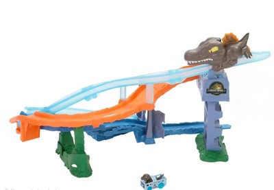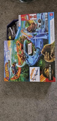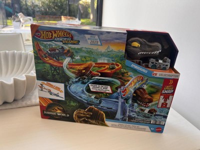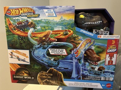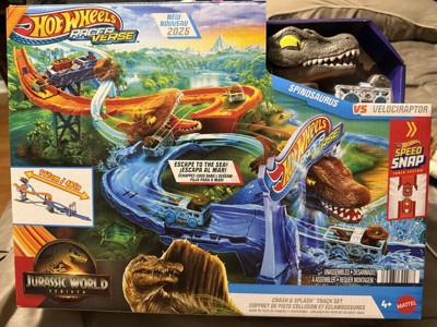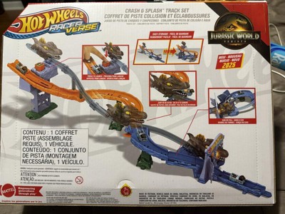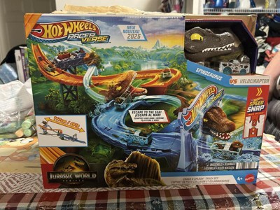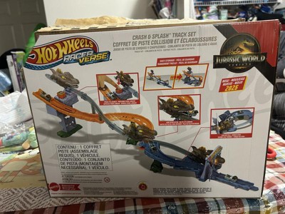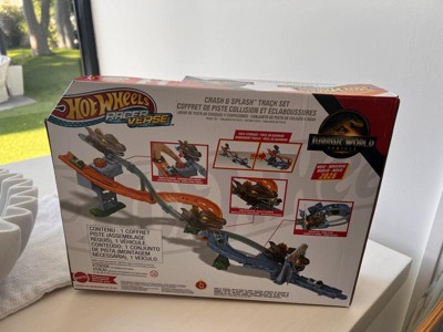 Jurassic World Hot Wheels Racer Verse Rebirth Crash and Splash Track Set and Die-Cast Dinosaur Toy Car