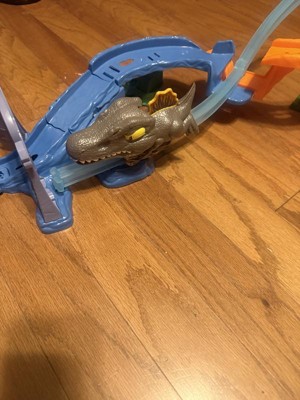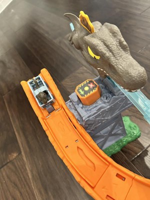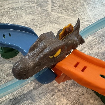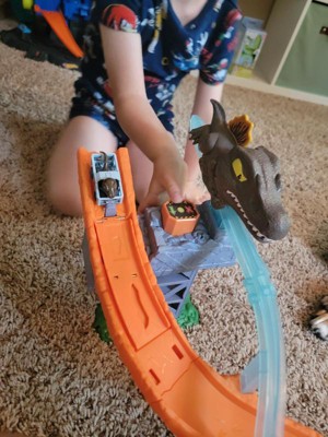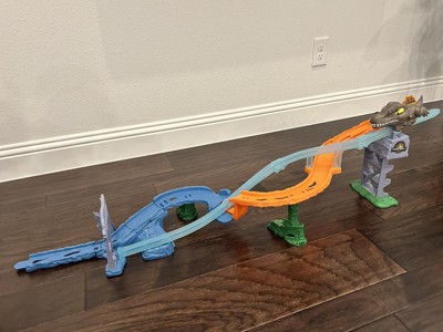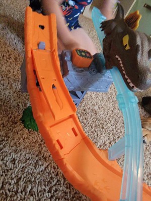 [This review was collected as part of a promotion.] This track is huge — like “clear-a-room-and-warn-the-pets” huge. My son, who is both a dinosaur enthusiast and a Hot Wheels fanatic was beyond excited when he saw it! Assembly was a breeze — every piece is labeled, which is great because I usually need a PhD to build toys these days. Bonus: It comes with a dino car and other hot wheels cars are compatible with this set. The real thrill? Watching my son race the car against the dinosaur like it’s the prehistoric Daytona 500. And get this — the dino MOVES ITS MOUTH while racing. Just when we thought it couldn’t get more dramatic, BAM — there’s a trap door and a pop-up ramp that launches cars like they're escaping Jurassic Park. It's like a Hollywood action scene in toy form. All in all, this track is the ultimate battle of extinction vs. acceleration. Whether you're starting your Hot Wheels collection or just adding more chaos to your living room, this toy is a winner.