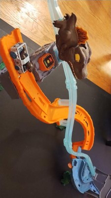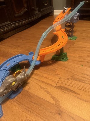 [This review was collected as part of a promotion.] This is a great Hot Wheels track! Love the incorporation of a dinosaur. Definitely gives off more excitement for the kids. Each run against the Dino was a different outcome! This set was super easy to assemble and fold up more compact for easier storage as well!