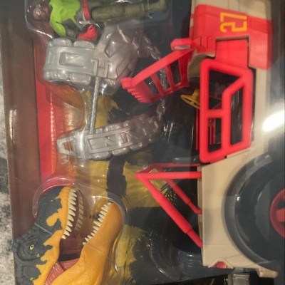 - Nonstop excitement! Attach the capture gear to the young T. rex with chomping action and place Ray Arnold in the vehicle -- but get ready to put on the armor if the dinosaur escapes!