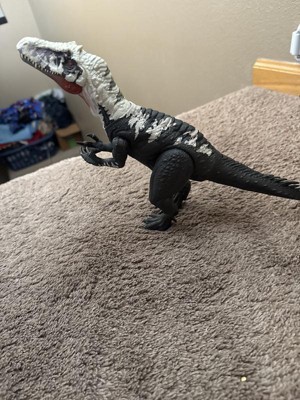 [This review was collected as part of a promotion.] The Chilantaisaurus, which is part of the Jurassic World Rebirth Gigantic Thrashers set, is another quality dinosaur in the series. The color contrast of dark gray-green with white markings on the back leading up to the head is striking, as is the red neck and eyes. The movement is easy for a child as twisting the tail to the right or left creates a sideways biting motion with protruding teeth. Pushing down on the tail makes it appear like the dinosaur is roaring or biting. Even though it’s an inanimate toy, the moves look natural, like one might see on the screen. There’s natural movement that looks lifelike. It’s made out of a solid plastic with some weight and can be posed to stand easily on hard surfaces. Like other dinosaurs in the series, it comes with a code to unlock the dinosaur on the Jurassic World Play app, that allows users to view a VR image of the dinosaur through a phone camera.