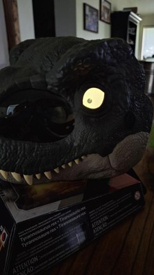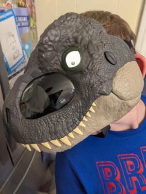 - Become a Tyrannosaurus rex! This T. rex mask with special LED blinking eyes, ferocious teeth and a soft growl lets kids become a favorite dinosaur with a realistic look straight from Jurassic World Rebirth!