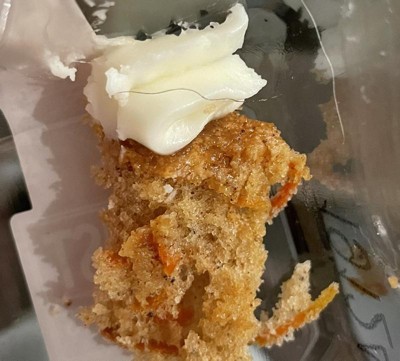 I got this carrot cupcake because they were out of the red velvet which is out of this world delicious. This one is terrible. The frosting is disgustingly sweet. I couldn't even eat it I scraped most of it off. The cake was dry and spiced very strangely. And also the cake was overly sweet. What a disappointment compared to the red velvet. If you like the red velvet and think you'll like this, think again.