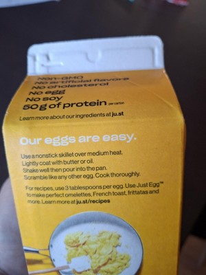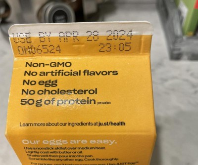 cholesterol. As always, Just Egg is plant-based, non-GMO and has no saturated fat.