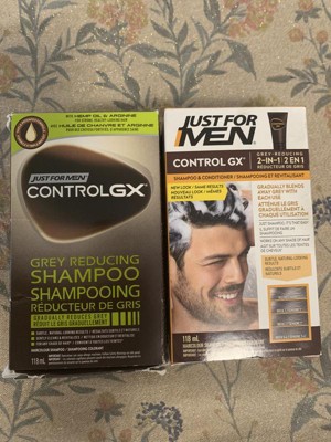 Control GX 2 in 1 is the first gray -reducing shampoo and conditioner that gradually reduces gray while it cleans, conditions and revitalizes your hair. Control GX 2 in 1 Shampoo and Conditioner has a breakthrough triple-patented formula that provides subtle, gradual results so you'll always have a natural look. All this by doing something you were going to do anyway - shampoo your hair. Get The Look You Want: Just use it instead of your regular shampoo until you like what you see. Keep It That Way: Then alternate with your regular shampoo to maintain the look you like. There's never been an easier way to control your gray. Reduce your gray a little bit with each shampoo using Control GX 2 in 1. Best for Light Brown to Black Hair. From the experts at Just For Men.