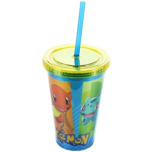 Catch em' all with this officially licensed Pokemon Carnival Cup! This 16 ounce cup features an eye-catching Pokemon graphic, along with screw-down lid and plastic straw. Hand wash only. Do not microwave.