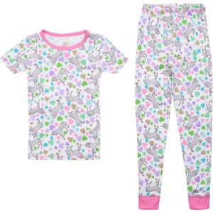 Just Love Girls Cotton Pajama Sets for Comfortable Sleepwear (White - Unicorn Hearts Short Sleeve With Pant, Girls 14-16)