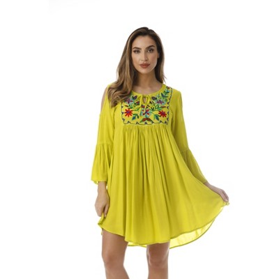 • LOOK SIMPLY STYLISH: Youll love the embroidered look eye-catching paisley boho print that contrasts beautifully with the bold colors. The women swim cover up also comes with a lovely lace up neckline and bell sleeves to make for unmistakably stylish resort wear