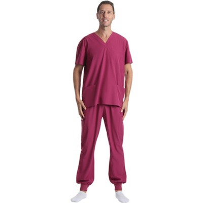 Just Love Scrub Set - 6 Pocket Medical Uniform - (V-Neck with Cargo Pant Nurse Set) 22228V-burgundy-M-2