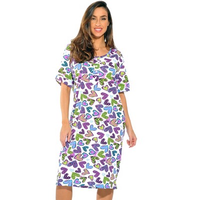 - Breathable cotton makes for comfortable all-season wear. - High quality screen printing doesnt prematurely fade. - Loose and roomy design beautifully fits most body types. - Machine washable for a hassle-free clean. - Comes in a wide variety of designs and color to suit any taste. Slip into the cutest nightshirts for women and experience a mix of comfort and great value for money that youll Just Love.