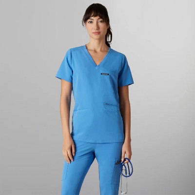 SCRUB TOPS DESIGNED WITH SUPREME COMFORT IN MIND Work Without Restrictions We understand constant movement is a big part of the job. Whether youre responding to an emergency, handling a patient, or power walking through the corridors like a boss, it all involves a great deal of moving around. Thats why we designed our new scrub tops to ensure every move is as comfy as can be. The secret behind the freedom of movement? A premium woven blend of 93% polyester and 7% spandex that creates comfy stretch. Experience what all-day comfort feels like. Quality Youll Love There is a reason why our medical scrubs are as popular as they are; it all comes down to durability. Scrubs take a lot of abuse. Theyre subjected to one thorough wash after another. To withstand the rigors of the job, we exclusively use high-quality fabric and complement it with reinforced stitching. This means the material remains in great condition, the colors retain their rich look, and the hems stay nice and straight for that clean, professional look. Dont settle for scrubs youll soon have to replace; get some that will give you maximum service. Here are more reasons to love this scrub top: ?Designed with a cute mock wrap and stylish V-neck. ?Available in multiple colors to match your uniform. ?Has two large pockets at the bottom, complete with a bungie. ?Comes in a wide range of sizes to suit the plus-sized to the petite. ?Side vents keep you cool for enhanced comfort on the job, ?Has matching stretch scrub pants for women to complete the look. Go ahead, complement your shifts with a touch of superior comfort!