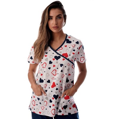 COMPLEMENTS YOUR BODY SHAPE: Weve steered away from the boxy ladies scrub tops using a slimmer design to give more shape to the uniforms. This is coupled with a cute V-neck to create one of the most flattering printed scrub tops around.