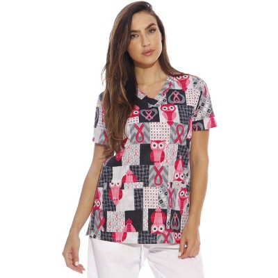 • COMPLEMENTS YOUR BODY SHAPE: We've steered away from the boxy ladies scrub tops using a slimmer design to give more shape to the uniforms. This is coupled with a cute V-neck to create one of the most flattering printed scrub tops around.