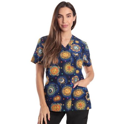 Just Love Women's V-Neck Printed Scrub Top