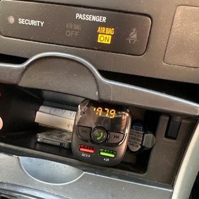 Plug this Bluetooth FM transmitter and charger by Just Wireless into your car's power outlet and you'll be able to play your music through any station on your car's FM radio via Bluetooth connection.