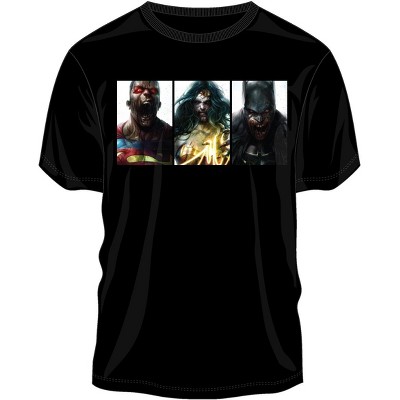 GRAPHIC TEE: This tee features all your favorite heroes from Batman to The Flash and from Robin to Supergirl. The heroes at the top are flying or leaping into action. The heroes underneath charge into combat.