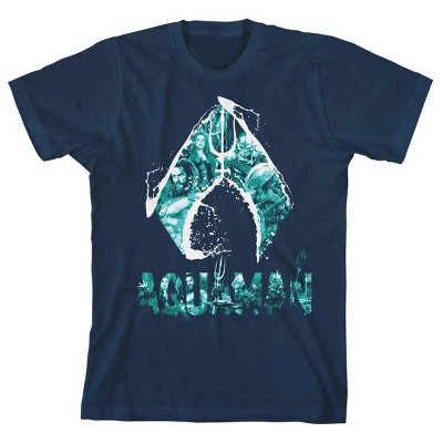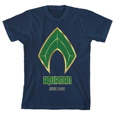 Justice League Movie Aquaman Emblem Boy's Navy T-shirt