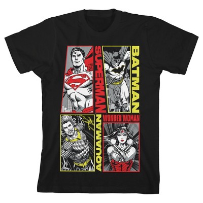 • GRAPHIC TEE: Superman, Green Lantern, Aquaman, The Flash, Cyborg, and Batman rush into action on this graphic tee. Their team name appears in white on a red banner above the heroes. This tee makes an awesome gift for fans of the Justice League.