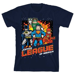 Justice League Pixel Characters Boy's Navy T-shirt - 1 of 4