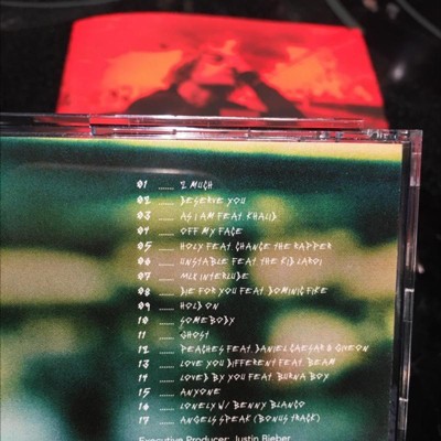 What an amazing album! The songs are literally so good no skips at all. Love the cover it’s so cute and very happy we got to get that bonus song as a target exclusive. Def a need to anyone thats a Justin fan or that likes to collect records/cds!