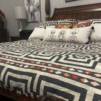 Hypnotic was inspired by a vintage African textile Justina spotted at a market in Paris. The geometric Greek key-like pattern makes this quilt feel classic and ripe for layering to complete the global-modern look.