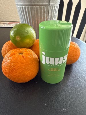 The juus green tangerine deodorant impresses with its refreshing scent, smooth application, and clean ingredients, making it a great choice for those seeking a natural alternative. Guests appreciate the fun packaging and the effectiveness in controlling odor throughout the day. While some noted the need for reapplication in hot conditions, many found it to be a reliable option for daily use, especially for those with sensitive skin.