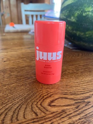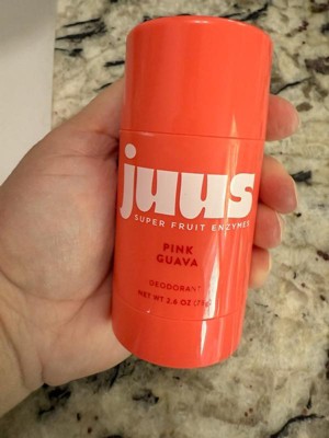 [This review was collected as part of a promotion.] I received this Juus super fruit enzymes pink guava aluminum free deodorant from Influenster and absolutely love it! I am really enjoying applying the nourishing product onto my pits and breathing in the magnificent scent it brings. It hydrates and softens my skin and has a long lasting fragrance. I am not a typically sweaty person and I do think I have to apply it by the end of the day. The container is such a pretty color. I appreciate that the product itself is paraben free, easy to use and I would definitely recommend to a friend.