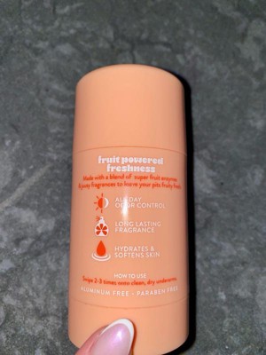[This review was collected as part of a promotion.] I’m obsessed! White Peach is that girrrrl, this deodorant glides on effortlessly. The packaging is absolutely adorable, along with the twist bottom making it easy to apply. There’s no aluminum, no parabens, or baking soda. Just fruit-powered freshness! The scent gives off delicate florals blending with the smell of sweet peaches. Will absolutely purchase over and over again!