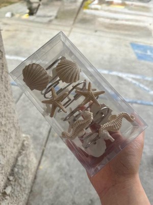 [This review was collected as part of a promotion.] I love these ocean creature shower hooks! These are not obnoxious, nor are they fake-looking. That is so perfect for my bathroom decor! There are three varieties of hooks: a fan shell, a seahorse, and a starfish. They will match any shower curtain you have because the figures are relatively small and off-white. The hooks are metal and rustproof, but they are barely even noticeable because the ocean figures are all you see when you hang these. I have only had these up for a week, and they are great so far. They slide easily along the rod, and they are nowhere close to rusting or anything. The hooks also hold my heavy fabric shower curtain securely on the rod, whereas my old ones had a tendency to pop off in random spots.