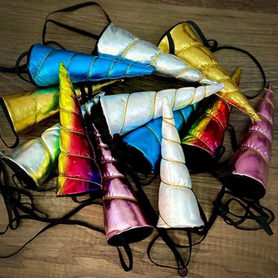 [This review was collected as part of a promotion.] My kids absolutely had a blast with these little unicorn horn headbands. They are gorgeous colors and fit the kids' heads perfectly. The only downfall is the string that's kind of wrapped around the horn doesn't last very long before coming loose.