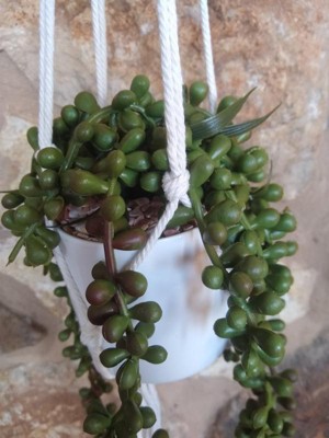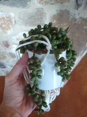 Juvale 2 Pack Hanging Artificial String of Pearls with Ceramic Pot Macrame Hanger, Faux Fake Plant for Wall Decor, 31 in