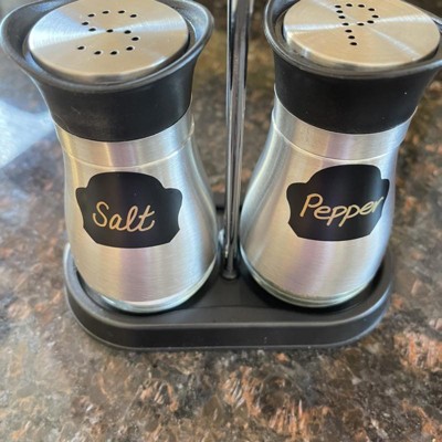 - Stainless Steel Salt and Pepper Shakers: Our refillable condiment shakers with a salt and pepper holder are made from high-quality stainless steel and a glass bottom that helps to verify when shakers are low