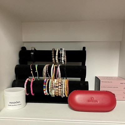 - 3 Tier Bracelet Display: Organize and display your bracelets and necklaces with this black velvet jewelry display storage rack, with 3 tiers you are able to compartmentalize your valuables needed