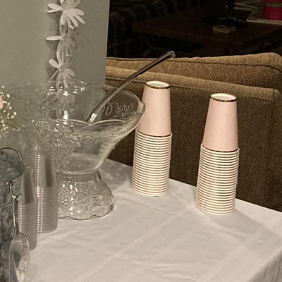 [This review was collected as part of a promotion.] These paper cups are so cute. They are a nice, baby pink color, with a pretty gold rim. They would be perfect for a little girls birthday party, Easter, or honestly any occasion. I use them just casually when guests come over. They are also good quality, and a good size for any drink. If you're looking for a pretty throw away cup, these ones are for you.