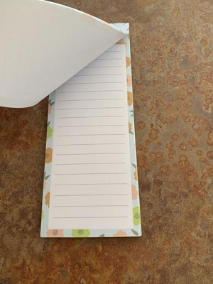 [This review was collected as part of a promotion.] I am old school and use notepads for my grocery list. I really love these the designs are super cute and cheerful. A huge bonus is the whole back is a magnet. Sometimes when it's just a small magnet for whatever reason the notepad starts to droop and not very cute looking on my fridge. But yea these are great, paper is nice, plenty of it too.