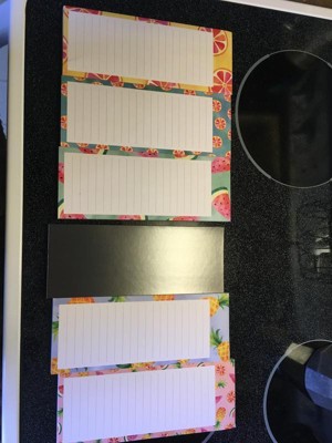 - What's Included: A set of (6) magnetic note pads that come in (6) colorful and on-theme fruit designs with 60 sheets per pad; Each notepad features a compact size, tear-away sheets, and full magnetic backing making it a versatile and durable companion, perfect as a shopping list. Express yourself with cute fruit designs and make every shopping session enjoyable