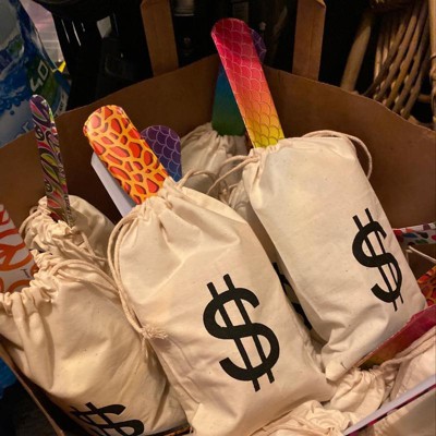 Juvale 7" Set of 12 Money Bag Pouches with Drawstring Closure Canvas Cloth and Dollar Sign Design for Toy Party Favors