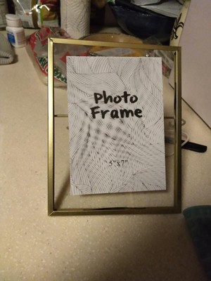 - Pressed Glass 5x7 Floating Picture Frame: Use this set of gold floating frames on the dresser, mantle, end table, or countertop to display your favorite memories